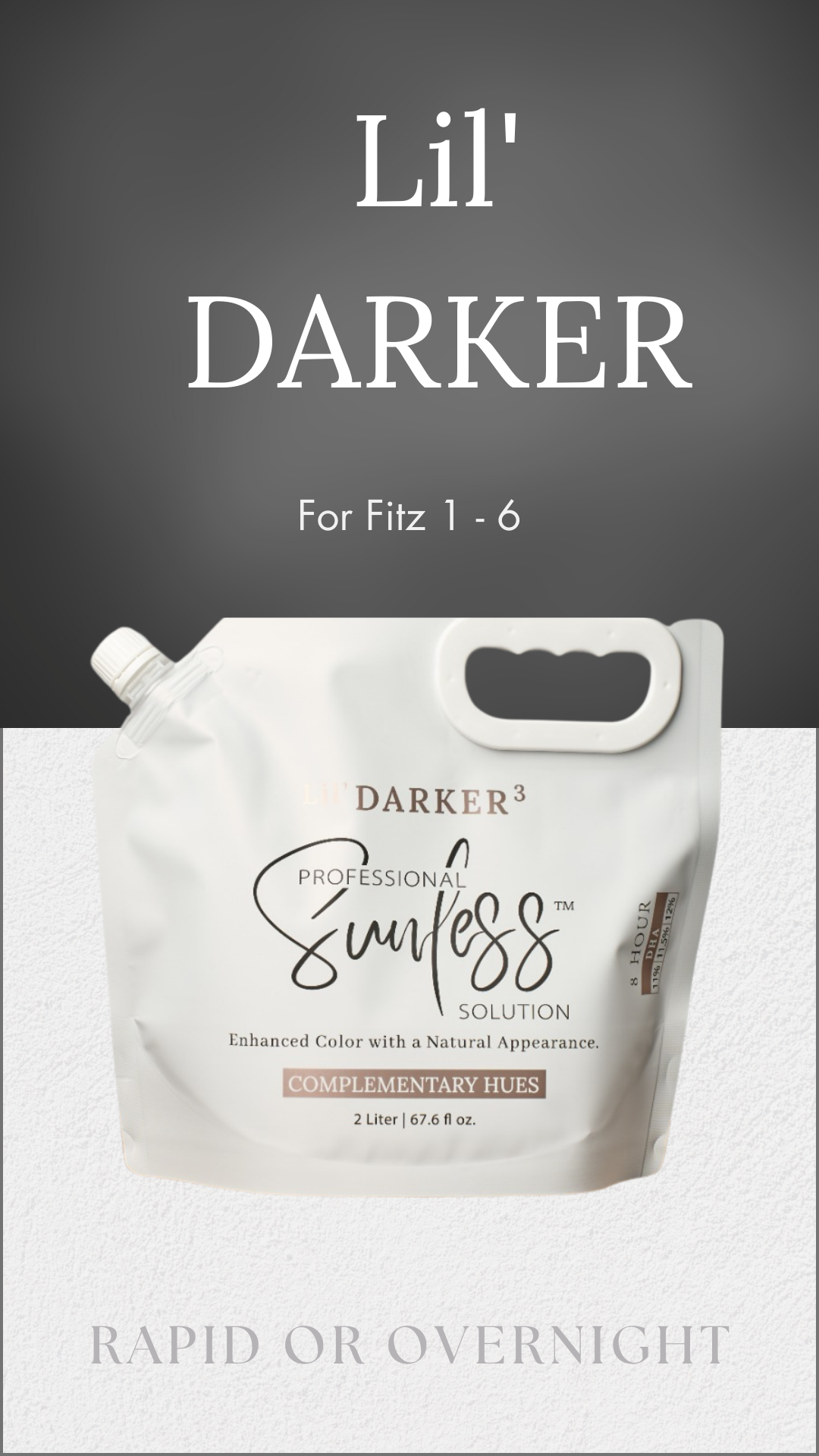 This solution offers a simple yet effective approach to achieving a professional, balanced tan. Ideal for those seeking a subtle enhancement without excessive darkness, it features flexible DHA options at natural depth levels of 11% or 12%. With no need for solution mixing, application is convenient and consistent. Clients effortlessly attain their desired look and embrace a ‘Lil’ Darker’ radiance that beautifully complements their complexion.